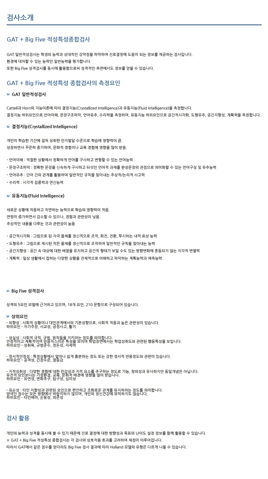 컨텐츠(본문)영역 전문가/기관심리검사 Home 전문가/기관심리검사 특징 및 제공서비스 특징 및 제공서비스 검사종류 및 가격 상품 상세 구매 적성특성 종합검사(고) 음성지원 분류 종합 저자/연구개발 한국적성연구소 검사대상 고등학생 문항수 약 90분 소요시간 332문항 참조 ※ 온라인검사를 실시하기 위해서는 검사실시코드를 구매하여 검사를 진행하시면 됩니다. 세부상품 (필수)선택해주세요. 검사실시코드 (7,000원) 총 검사 상품 금액 0원 장바구니 주문하기 WEB결과샘플 PDF결과샘플 피검자(동일검사를 2회이상 실시)의 변화추이를 확인하는데 도움이 됩니다. 개인웹비교결과샘플 개인사전사후결과샘플 개인누적비교결과샘플 그룹(동일검사를 2회이상 실시)의 변화추이를 확인하는데 도움이 됩니다. 그룹종합결과샘플 그룹사전사후결과샘플 그룹누적비교결과샘플 검사정보 관련검사 상품 검사문의 관련검사 상품 관련 심리검사 적성특성 종합검사(중) GAT 일반적성검사(중) GAT 일반적성검사(고) BIG FIVE 성격검사(중) BIG FIVE 성격검사(고) 검사문의 Page 1 / 0 총 0건 해당 검사에 대한 문의만 해주시길 바랍니다. 검사문의 쓰기 게시판 리스트 번호 제목 답변상태 작성자 작성일 No Data.