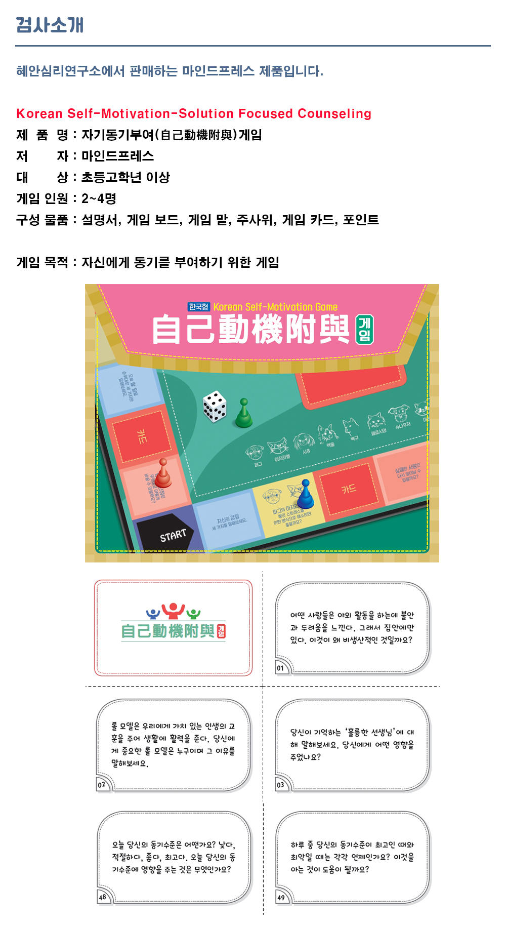 컨텐츠(본문)영역 전문가/기관심리검사 Home 전문가/기관심리검사 특징 및 제공서비스 특징 및 제공서비스 검사종류 및 가격 상품 상세 구매 자기동기부여 게임 분류 도구 저자/연구개발 검사대상 초등고학년 ~ 성인 문항수 소요시간 참조 ※ 온라인검사를 실시하기 위해서는 검사실시코드를 구매하여 검사를 진행하시면 됩니다. 세부상품 (필수)선택해주세요. 게임 (38,000원) 총 검사 상품 금액 0원 장바구니 주문하기 검사정보 관련검사 상품 검사문의 관련검사 상품 검사문의 Page 1 / 0 총 0건 해당 검사에 대한 문의만 해주시길 바랍니다. 검사문의 쓰기 게시판 리스트 번호 제목 답변상태 작성자 작성일 No Data.