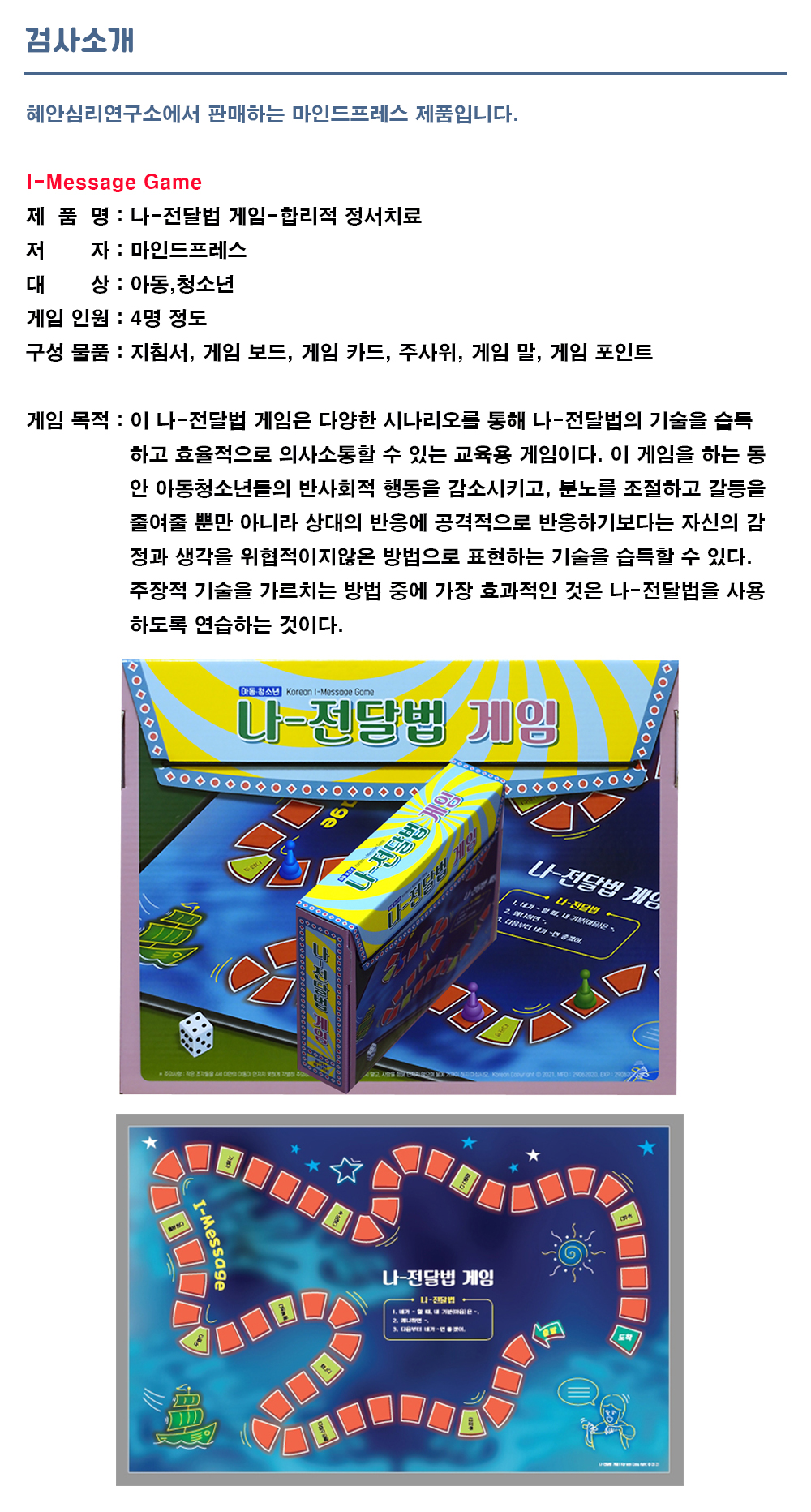 컨텐츠(본문)영역 전문가/기관심리검사 Home 전문가/기관심리검사 특징 및 제공서비스 특징 및 제공서비스 검사종류 및 가격 상품 상세 구매 나 전달법 게임 분류 도구 저자/연구개발 검사대상 아동, 청소년 문항수 소요시간 참조 ※ 온라인검사를 실시하기 위해서는 검사실시코드를 구매하여 검사를 진행하시면 됩니다. 세부상품 (필수)선택해주세요. 게임 (45,000원) 총 검사 상품 금액 0원 장바구니 주문하기 검사정보 관련검사 상품 검사문의 관련검사 상품 검사문의 Page 1 / 0 총 0건 해당 검사에 대한 문의만 해주시길 바랍니다. 검사문의 쓰기 게시판 리스트 번호 제목 답변상태 작성자 작성일 No Data.